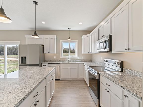 This Alexander plan boasts a bright open floor plan with extra kitchen storage and a walk-in pantry. Enjoy all the natural light with the kitchen window, patio door, and large living room window looking over the backyard. You’ll love the private master suite with a large walk-in closet as well as the laundry on the 2nd level. This home features 3 bedroom and 2.5 baths with spacious upper-level loft area all on 1.3 acres in the Hudson area with convenient a location to shops, schools, entertainment and the Hudson, River Falls and Minneapolis/St. Paul area.