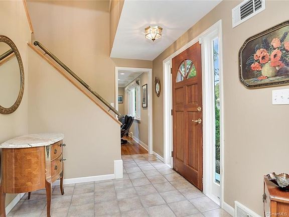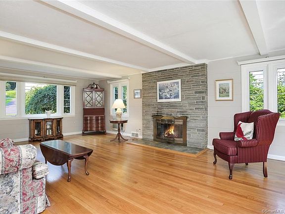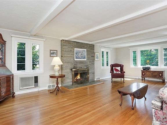 Great space, practical layout and so much to like in this midcentury home. Beautiful property circled by trees, gorgeous private back yard with large patio. Front-to-back living room filled with sun all day, large windows and fireplace with character. Newer windows, including pretty casement windows. Open foyer, fresh-looking updated kitchen with white cabinets, granite counters. Breezeway enclosed and heated to serve as mudroom, with access to back patio. All baths updated. Upper level hall bath has skylight. Laundry conveniently located upstairs. Basement could be playroom or family room; fireplace and bar are in place, ready for new finishes. Double garage with abundant storage space, new doors. Desirable, upscale street enhances investment value of this home. Superb neighborhood with manicured properties, quiet, close to town conveniences and transportation. Wonderful value for a dream lifestyle!