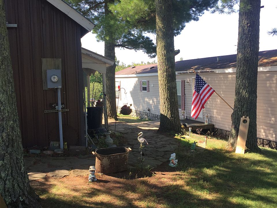 2 bed 1 bath home. Laminated flooring. Garage has 3 separate rooms. T&G . Yard has several large trees. Manny young trees planted all over property. 4.2 acres.