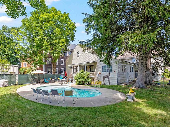 Step into timeless elegance with this exquisite antique colonial home, offering a gracious floor plan and a host of distinctive features. The property welcomes you with a covered wrap-around porch, perfect for enjoying serene afternoons. The level and grassy fenced-in yard with an in-ground gunite pool, provides a private oasis for relaxation and enjoyment. The interior of the residence showcases classic details including a grand marble fireplace, beautiful wood floors, and a walk in pantry, enhancing the home's historical allure. The home offers 6 spacious bedrooms and 2 bathrooms, complemented by a range of inviting spaces, including a serene solarium and a richly appointed library for quiet reading and reflection. The large post-and-beam barn adds a touch of rustic charm, with soaring ceilings and a partially finished space above that offers endless possibilities. This colonial residence masterfully combines historical charm with contemporary amenities, making it a unique and captivating home. Located in the downtown village of Farmington, NH where you can find a golf course, shopping, dining and quick access to the HWY.