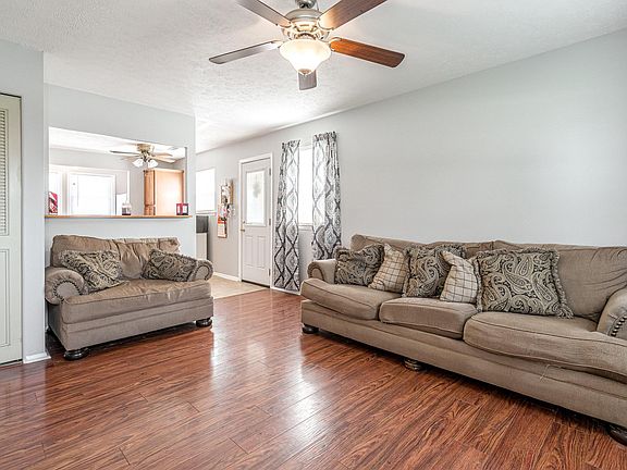 No showings until 9/12 at 3pm. Welcome to this 4 bedroom, 2 full bathroom brick ranch home in the heart of Hillview. Upon arrival, you're greeted by the lush, green, well-manicured lawn, accented by a beautifully landscaped garden and convenient front patio. Entering the home, you are welcomed by beautiful laminate floors that lead you through the living room. Straight ahead, a breakfast bar peers into the large, eat-it kitchen with ample cabinet space, while a hallway awaits you on the left, leading you to the four bedrooms and a full bathroom with a gorgeous vanity and tiled tub-surround. Off the master bedroom is a second full bathroom with tiled walk-in shower. Out back, you'll find a very large driveway connected to a detached 2-car garage, as well as a fenced in backyard