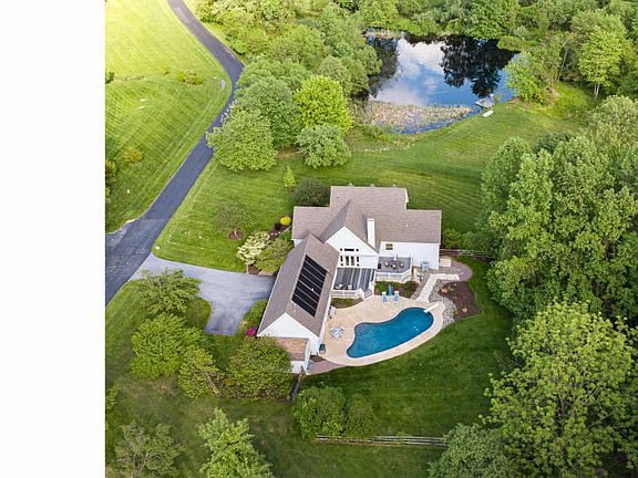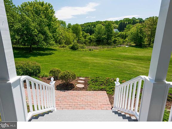 Welcome to 374 N Buck Rd. Arise every morning and be greeted with a rarely found serenity with gorgeous pond views from the many windows or from the large covered front porch! Experience nature right in your own backyard! This Custom-built home & property is a welcome haven situated on a shared private lane in the ultimate natural setting including a stream, meadow, wooded and open lawn area and overlooking a 3/4 acre pond with a dock, stocked with large-mouth bass. Enter the open concept floor plan with soaring cathedral ceiling grand entrance, curved staircase, and 2nd-floor overlook. The stunning Great Room with two stories of windows, floor to ceiling custom stone fireplace and atrium doors leads outside to the large deck, patio, and the solar heated inground pool! Beautiful hardwood floors flow throughout first-floor foyer, Dining Room and kitchen adding to the ambiance. The remodeled Gourmet Kitchen has hardwood flooring, tile backsplash, granite counter tops, 6-burner gas range with pot filler, stainless steel range hood, stainless steel appliances, custom solid wood & glass cabinetry, and a peninsula counter with seating. The Breakfast area with bump-out and wall of windows for sun-filled breakfasts or informal dining. The formal dining room is perfect for entertaining family and friends. The Laundry/mud room is off the kitchen area and provides access to the side deck and garage. Set apart from the main living area is the First floor Master Suite offering a sitting room, luxurious remodeled Master Bath with two separate vanity areas, corner Jacuzzi tub, private commode area & custom tile shower. Additional home office/den is also located on the 1st floor providing privacy while working from home. Up the stairway, you will find 2 large additional bedrooms & renovated hall bathroom. Another WOW factor is 1,290 sq. ft. finished Basement/Recreation Room with media room with a soundproof ceiling, a tiled full bath w/shower, custom wet bar, and plenty of daylight from windows and French doors which lead to the lower level walkway to the in-ground pool area and pond. This area can easily be used as additional living quarters. In addition, there is a huge storage area. The 2-car garage also offers a 22'X22' open workshop with 10' ceiling, dust collection system windows for natural light and access door to the pool area. The garage/workroom has been plumbed for a powder room and is wired for 110v and 220v electric. Additional Updates: Designated switch for front window outlets to accommodate decorative lighting, On Demand Hot Water Heater. Nowhere else can you find this peaceful seclusion and still be within minutes to major arteries, shopping and train station.