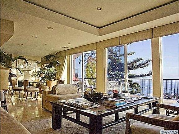 This Exquisite and beautifully designer decorated home is located in North Laguna. This stunning home features luxurious furnishings throughout. Breath taking Catalina and ocean views with spectacular sunsets. It is just blocks to the beaches and a short stroll to downtown where you will find restaurants, art galleries and plenty of shopping. This home features 3 generous bedrooms, along with a beautiful office with ocean views. The romantic master suite has it's own balcony. The master bathroom contains a jacuzzi tub for soaking. The gourmet kitchen features all high end appliances. The great room opens up to large balcony to enjoy the views. There is private outdoor living space in the front courtyard, where you can relax or entertain. There is also a 3 car garge and a golf cart is available for an extra fee. This home is a must see