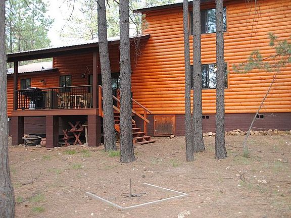 Very Rare Fully Furnished 5 Bedroom, 3 Full Bathroom Cabin With An Attached 2 Car Garage On A Wooded Acre In Forest Lakes! Perfect for large gatherings with plenty of space found in an open kitchen, spacious great room and large loft. Travertine tile and carpet found throughout, vaulted ceilings with gorgeous custom tongue and groove wood reclaimed from the Rodeo-Chediski fire. Floor to ceiling stone fireplace, maestro lighting system and recessed lights. New tree house overlooking large fire pit and seating. Located on a private dead end road on the Coveted South Side of Forest Lakes with only 100 properties creating a peaceful environment year round. We use this cabin for pleasure and also rent it year round through VRBO and Airbnb making it an incredible investment property.
