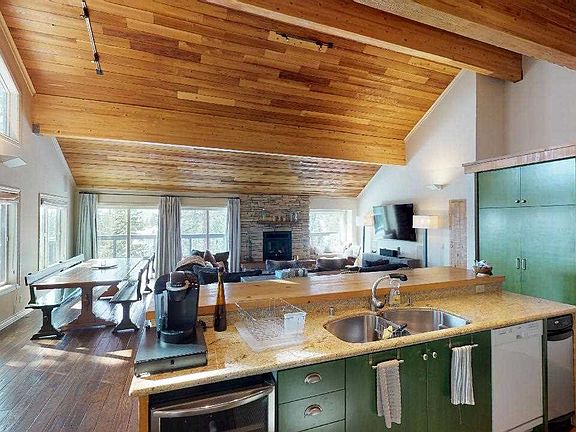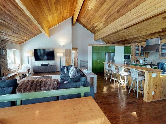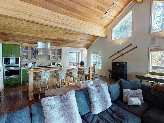 This gorgeous, upgraded 5 bedroom mountain getaway is just up the hill from the village. With spectacular views of the Sherwin mountains to the south, the large, spacious great room is perfect for entertaining multiple families with ease and comfort. A beautiful 3,300 sq. ft home that features an over size two car garage, extra family room, three large Trex decks, three master bedrooms, a Sonos audio system, hot tub, laundry room and oversize driveway. This home has everything you need and more. A must see! Will also consider a 6 month lease at $10,000/month.