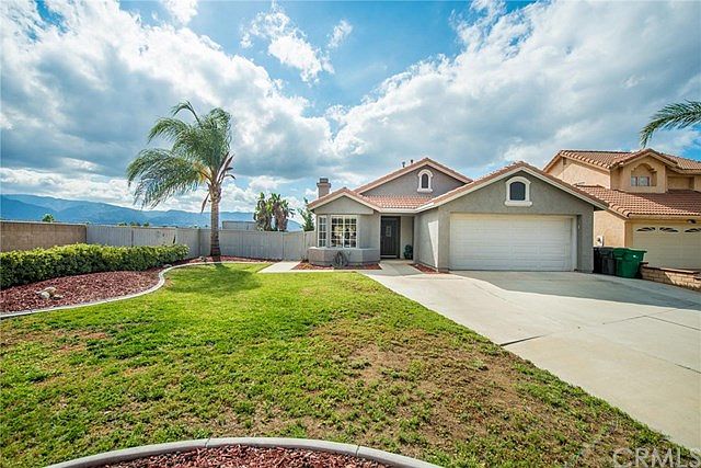 Gorgeous Single Story home with mountain views and the privacy you desire are here! Visit outside in a secluded setting with lovely views from everywhere. The spacious backyard with patio, large grass area, will be all that you need to call this home yours. Beautiful and updated tile floors entice you in the door; while soaring tall ceilings add a dramatic feel to the open living area alongside of brick fireplace. Beautiful kitchen with Bay large windows that bring in light, air & the views of the mountains. Immaculate kitchen is complete with every appointment; breakfast counter/bar, white cabinetry, sparkling white appliances. Or, host a family event in the open living room area. Attached two car garage and plenty of entertaining space in this backyard. This one is perfect for a buyer who is ready to move into their perfect home and are ready for every occasion & make an elegant place to entertain. NO HOA LOW LOW TAXES!!