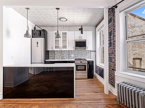 Welcome to 374 Rutland Road, Apartment 2R, a bright and stylish two-bedroom residence in the heart of Prospect Lefferts Gardens. This thoughtfully renovated second-floor walkup blends historic charm with modern convenience. Oversized windows flood the home with natural light, highlighting the beautifully refinished parquet floors and classic wall moldings. The kitchen is a true centerpiece, featuring stainless steel appliances, sleek cabinetry, and striking patterned tilework that complements the exposed brick detail. The layout includes two separate bedroom, one that can easily serve as a home office, creative space or guest room, offering flexibility for a variety of lifestyles. The bathroom continues the stylish aesthetic with bold black-and-white tiling, exposed brick, and contemporary fixtures. Prime Location: Enjoy the charm and convenience of Prospect Lefferts Gardens, just moments from Downstate University, Kings County Hospital, neighborhood cafes, and easy transportation via the 2 and 5 trains. Details: 2 Bedrooms | 1 Bath Heat & Hot Water Included Second-Floor Walkup Approx. 473 sq. ft.