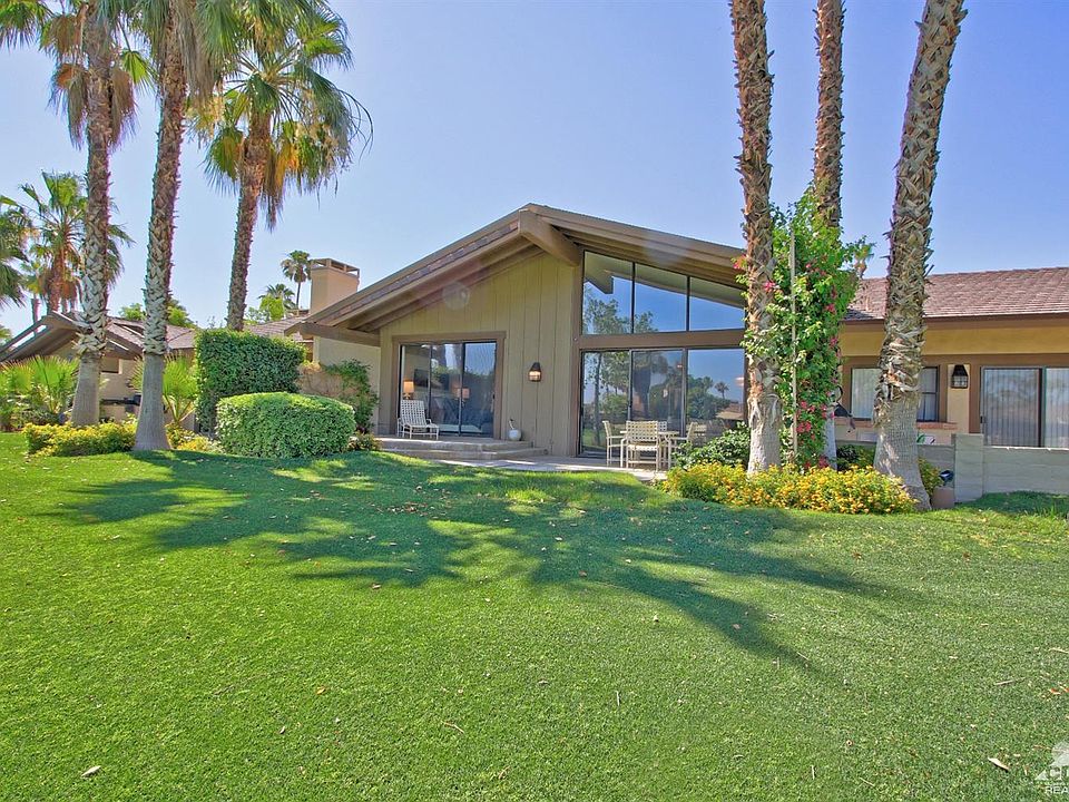 The lakes, 24/7 guarded, gated community. The perfect location. On the golf course double fairway with lake view. Open spacious floor plan. Generous use of glass, skylights and high ceilings. Bright, light and relaxing. Very close to quite pool & spa(48 in community). Two bedroom suites, master & guest. Master suite opens to patio on fairway. Enjoy the open livingroom with fireplace, wet bar and floor to ceiling glass with picturesque view of the double fairway and lake. Double garage with separate golf cart garage. Located on quite cul-de-sac. Newer air conditioning and two 50 gallon water heaters. Golf memberships available. Tennis & fitness included in hoas. All furniture stays.(zbl(11) - 01503224330)
