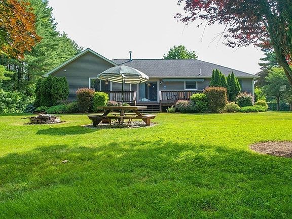 A rare opportunity to own this Unique, Custom Built Ranch that sits on over one acre of land directly across from beautiful Webster Lake! 3 Bedrooms, 2 Full Baths, with 14' Cathedral Ceilings, Recessed Lighting, Gas Log Fireplace w/Remote, Central Air, Central Vac, Granite Kitchen Counters w/ Granite Center Island, Oak Cabinetry w/Under-Lighting, 3/4" Solid Oak Flooring, Over-Sized 2 Car Garage, Mahogany Porch, Cedar Deck w/Remote Awning, Professional Landscaping, Sprinkler System, Storage Shed, Water Fountain and a Full Basement are just a few of the characteristics that make this home so special. Sellers have kept this property in immaculate condition which is apparent the moment you set eyes on it. The incredibly spacious one floor living plan is perfect for entertaining or just spending quiet evenings on your deck surrounded by beauty. The front porch is the perfect place to watch the sun rise over the lake while taking in all of the elegance this home and yard have to offer.