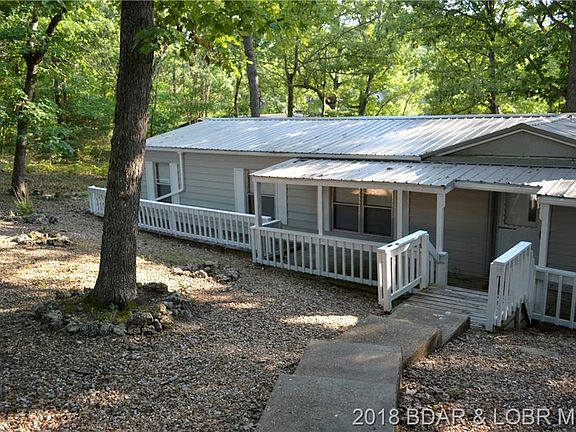 Are you looking for a rustic setting? Check out this gentle lakefront lot in protected deep water cove. Well maintained, manufactured home with a newer metal roof installed in 2010 and new carpet. The home is located in a nice neighborhood with blacktop road to within 1/4 mile. The lot is landscaped with low maintenance rock covering and the seawall is natural Ozark stone. The deck wraps around the home and a Martini Deck sits down next to the water for you to enjoy a cup of coffee in the morning or an adult drink in the evening. A double car garage/workshop is icing on the cake for your toys or hobbies. It comes with a single well doc and an older Lowe pontoon with 90 hp outboard will be left with the house