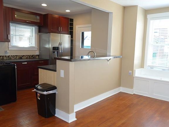 beautifully updated home with open kitchen, updated bath, charming backyard-garage and driveway are too small for most cars, good for storage, bicycles, motorcycles