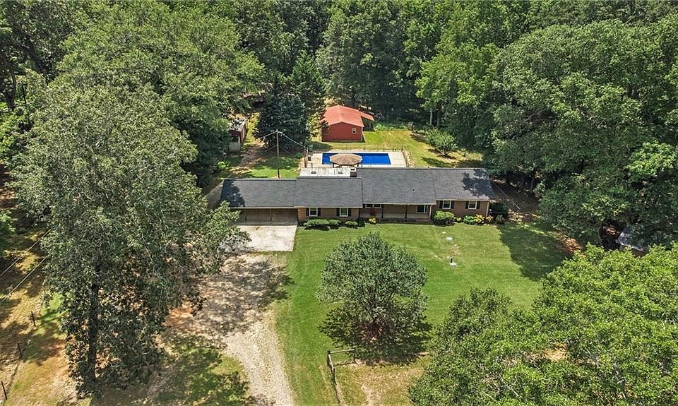 Beautifully remodeled family retreat home on almost 10 acres in Hampton! Tucked away off a quiet road and a long driveway you will find this pristine 4-sided brick ranch which is an oasis of privacy for your family and also a great place to entertain with an in-ground pool and pergola. For outdoor hobbies or keeping livestock, there is a workshop with electricity and running water and two additional outbuildings. Inside, there is ample space with 3 beds, 2 full baths, a sunroom, a charming den/game room or office, and a wood-burning fireplace in the keeping room off the kitchen. The acreage is breathtaking with several areas of rolling pastureland and additional wooded acreage. In addition, this home is on city water which is rare for 10 acre lot. SUPER CLEAN AND MOVE-IN READY, COME AND TAKE A LOOK!!