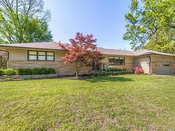 Stacked Stone Ranch with amazing gunite pool. Front living with built in and formal dining. Open Kitchen with new cabinets and vintage stove. Prep Kitchen with additional storage. Great Den with Fireplace. Laundry room with half bath accessible from pool/patio. Master with Updated bath. Charming original Pink Bathroom. Wood floors throughout. New Railing on front porch.