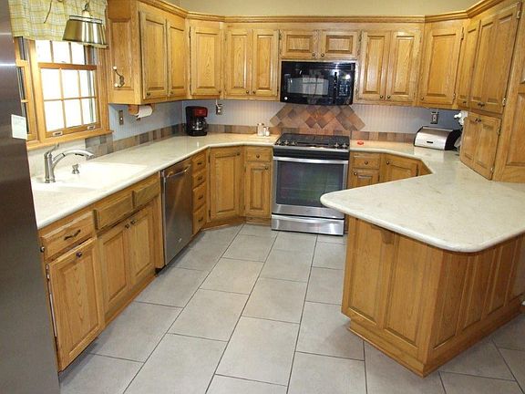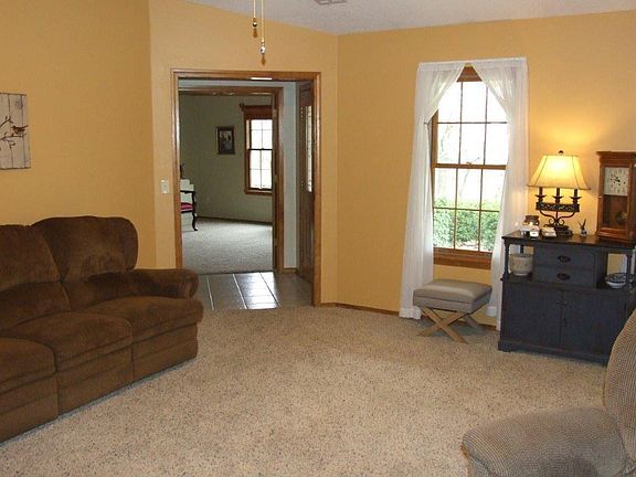 Open and inviting split floor plan 3 bedrooms, 2 full baths, great room, dining and kitchen all open for entertainment. House has a two-sided wrap-around porch. Great storage in kitchen with deep pull out drawers to hold essentials, large pantry, updated countertops, tile floor, and gas range. 3 car garage, third garage has been used as a workshop. Open RV or storage shed. Property has lots of trees and is a beautiful and serene setting all year long. There is an area toward the back of the property where you can create your own park-like setting.