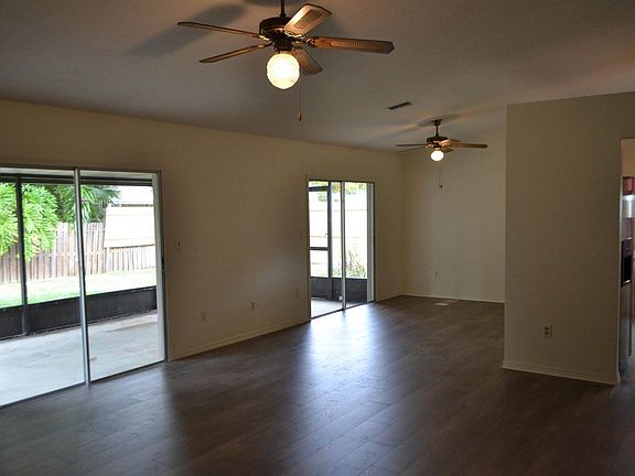 This spacious 3 BR 2 Bath home offers brand new wood laminate flooring in living area. Slider doors from the living and dining area, lead out to fenced backyard. Both the front and back porches are screened to enjoy the outdoors. Home also features 2 car garage and washer and dryer. Low maintenance front yard with drought friendly, washed gravel. Location is ideal with easy access to I95, Orlando, Daytona and beaches.