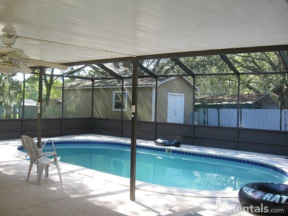 Large 2 bedroom, 2 bath home on over half-acre lot in North Lakeland. Rear yard has privacy fencing with large screen inground pool & separate hot tub plus tiki bar. Also has large free standing workshop & storage. Double carport. 07/28/17