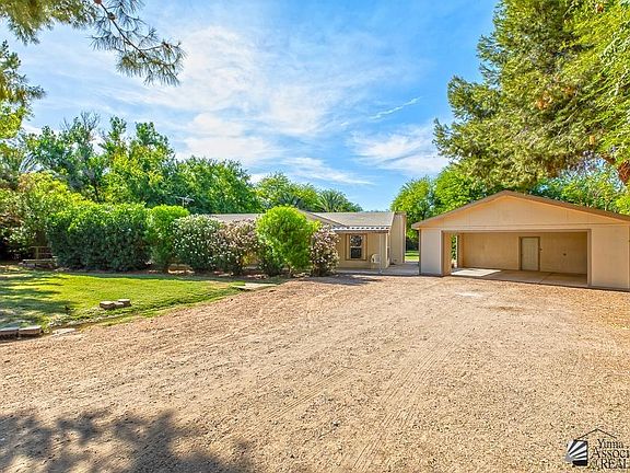 2.35 acre irrigated oasis on the Mesa! TREES: 3 Medjool date, 2 grapefruit, lemon, 2 tangerine, 2 fig, limequat, orange kumquat, pines, palms, grape vines, jazmine brush, hibiscus, and many more healthy well cared for landscape. Raised garden on back patio. 26' X 26' carport with 208' storage AND 21' X 31' open tractor barn. Home was a 4 bedroom model, however, one room is used as dining and one room used as an office with double doors and the closet was incorporated into the primary closet which can easily be converted. Tape and textured home with front and back awnings. Vaulted ceilings and beautiful natural lighting throughout. Spacious kitchen with dining area. Large laundry room with extra storage. Primary ensuite with oversized walk in closet and bathroom with shower.