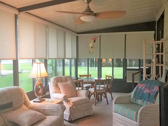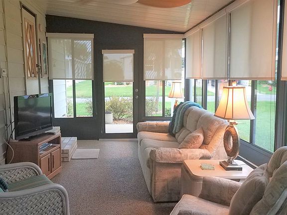 Located on leased land in 55+ community. 2 Bedroom, 1.5 Bathroom, Fully Furnished and Beautifully Maintained Home. Florida Room with glass windows, screens, and new blinds. Home itself is HUGE with bedrooms on separate ends of the unit for great privacy and TONS of storage. Lots of updates here - newer kitchen with updated appliances and even a DISHWASHER! 2012 30 Gallon Hot Water Heater, 2018 Huge Central A/C Unit with Humidistat and Heat Pump, New Windows throughout the home, New Laminate Floors throughout the home, high-end remote-control ceiling fans with lights, AMS Roof-over, and more..... Extras are a 20' shed with full size washer/dryer (the washer is brand new in 2020) and an attached carport long enough to fit two vehicles. All of this is located on a beautifully landscaped site. DON'T MISS THIS ONE!