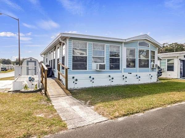 ** Exclusive Listing!Age 55+ Land Lease Community with $374 monthly lot rent.Contact listing agent below for ALL showings and offers.** You'll soon be enjoying the carefree Central Florida lifestyle as the new owner of this comfortably roomy and smartly expanded 1992 Park model home. Attractively priced at $27,500, and originally measuring 12x34, plus the additions of the Florida room, guest bedroom, and storage/laundry room, this home will provide an approximate total of 720 square feet of interior living space, with two bedrooms and one bathroom. It is in move-in ready and will be sold fully furnished, so moving day will be quick and easy! It is already handicap accessible, with a chair ramp leading up to the side entry door. Outside, you can soak in the sunshine on the open raised deck beside the Florida room. Your new home is located on a large corner lot close to the park amenities and entrance/exit in Landing RV Resort of Zephyrhills, a very well maintained and friendly 55+ adult community in the heart of Central Florida. You're going to love living here! This is a park model home on leased land. The land/lot is not included with the sale. The lot rent for year round residents is $4488, paid in full annually, or $2244 bi-annually, or $1122 quarterly (Preferred Option), or $374 monthly. The lot rent for seasonal (7/5) residents is $4248 paid annually, due October 31. Lot rent includes water, sewer, trash removal, and use of park amenities.