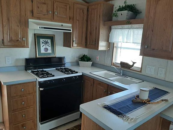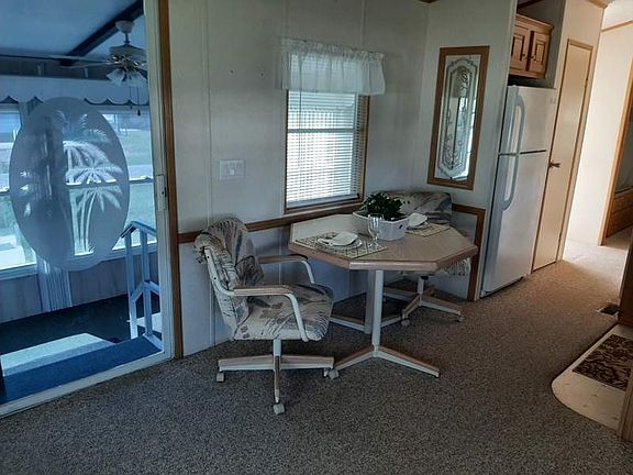 If you love Florida living, you will love this home with a huge Florida room! What a wonderful way to start the day with a cup of coffee or tea relaxing either at the dining table included or if you prefer, the Florida Room! The location of the home is great! It is right across the street from the pond and nature walk and convenient to the clubhouse! The home packs a punch and lives large with vaulted ceilings and carpeting throughout. For convenience the home includes a washer in the shed. The kitchen also sports a large peninsula counter for easy prep, pantry and a full size gas stove! The large bathroom has a beautiful transom window above the bathtub for additional lighting and a linen closet for storage! Get a great night's sleep on a comfy queen size bed included. There is plenty of storage in the bedroom with almost 20 drawers and cabinets! Enjoy easy Florida living in this amazing home with multiple patios. Come check it out soon, because this beauty won't be here for long. This home is located in an active resort style 55 plus community in Zephyrhills. Enjoy the tropical surroundings in a low-maintenance lifestyle and convenient access to all there is to see and do in this idealistic neighborhood. The community features a heated pool, planned activities, a clubhouse with kitchen, pool table, ping pong and darts. The community also features shuffleboard. As a land lease community, while you would own your home itself, the land it resides on is leased. Lot rent is $450.00 per month (care of common areas and lawn mowing).