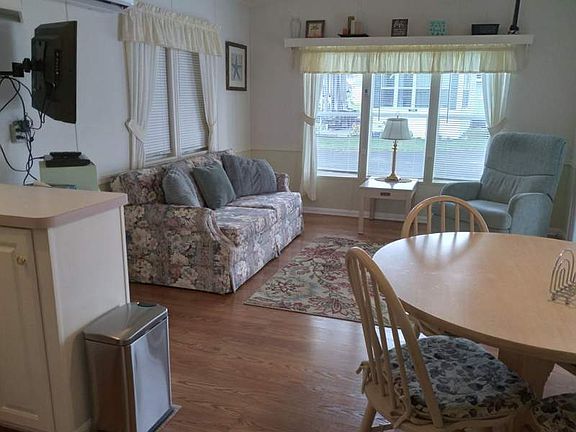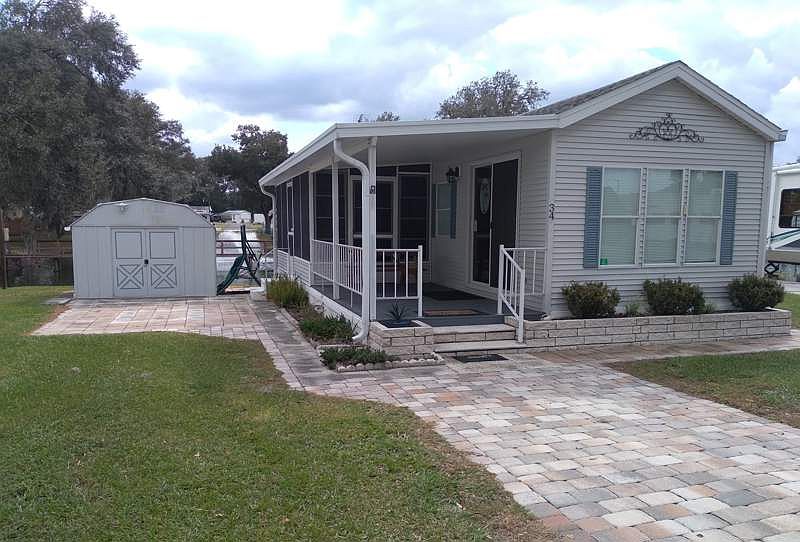 This home is located on the pond and nature walk! Bring your toothbrush and you are set! The owners are leaving all furnishings, TV's and housewares. The home packs a punch and lives large with vaulted ceilings and upscale laminate flooring throughout. For convenience the home includes a washer in the shed. The kitchen also sports a pantry and a full size gas stove! The large bathroom has a step in shower with beautiful transom window and linen closet. Want a room with a view? The large Florida Room has that and more. It looks out over the pond and includes a large screen TV for your viewing enjoyment! Get a great night's sleep on a comfy queen size bed. Enjoy easy front porch living in this amazing home that includes a picnic table and glider. Come check it out soon, because this beauty with a great location won't be here for long!This home is located in an active resort style 55 plus community in Zephyrhills. Enjoy the tropical surroundings in a low-maintenance lifestyle and convenient access to all there is to see and do in this idealistic neighborhood. The community features a pool, planned activities, a clubhouse with kitchen, pool table, ping pong and darts. The community also features shuffleboard. As a land lease community, while you would own your home itself, the land it resides on is leased. Lot rent is $450.00 per month (care of common areas and lawn mowing).