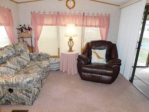** Exclusive Listing! Age 55+ Land Lease Community with $374 monthly lot rent.Contact listing agent below for ALL showings and offers.** You will know you are looking at your new home as soon as you see this smartly expanded 1989 Oak Park Model Home with a tranquil water view. Priced to sell at $24,000, and measuring 11x37 plus the additions of the Florida room and guest bedroom, this special home will provide an approximate total of 650 square feet of interior living space, with two bedrooms and one bathroom. It is in very good condition, immediately available, and will be sold fully furnished, so your transition to Florida living will be quick, easy, and stress free. Your new home is located on a perimeter lot with a tranquil water view in Landing RV Resort of Zephyrhills, a very well maintained and friendly 55+ adult community in the heart of Central Florida. Two bedroom park model home, water view, and low lot rent! That's a rare combination! Call today and make it yours; if you don't buy it, someone else will! This is a park model home on leased land. The land/lot is not included with the sale. The lot rent for year round residents is $4488, paid in full annually, or $2244 bi-annually, or $1122 quarterly (Preferred Option), or $374 monthly. The lot rent for seasonal (7/5) residents is $4248 paid annually, due October 31. Lot rent includes water, sewer, trash removal, and use of park amenities.