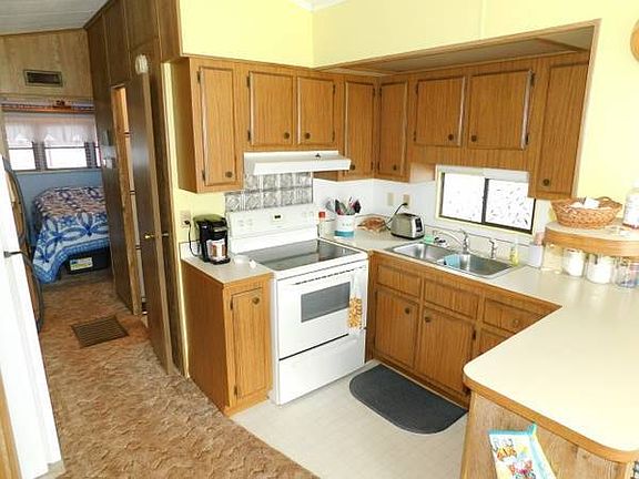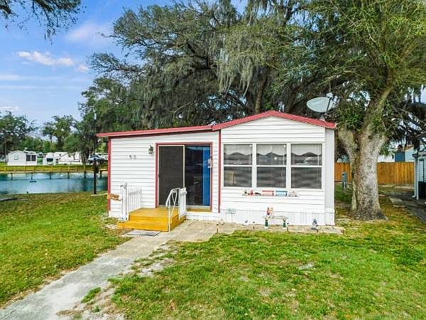 WATER VIEW! PRICED TO SELL!! Here's the one you've been waiting for! Take a close look at this very appealing and smartly expanded 1987 Park Model that could soon be your personal piece of paradise! Priced to sell at $24,900, and measuring 12x34, plus the additions of the Florida room/living room and the guest bedroom, this home will provide an approximate total of 740 square feet of interior living space, with two bedrooms and one bathroom. It is in excellent condition and will be sold fully furnished, so your transition to the easy life will be complete on moving day! Your new home is located on a perimeter lot with a tranquil water view in Landing RV Resort of Zephyrhills, a very well maintained and friendly 55+ adult community in the heart of Central Florida. An affordable two bedroom home as nice as this one is a rare find! If you don't buy it, someone else will, so call today! This is a Park Model home on leased land. The land/lot is not included with the sale. The lot rent for year round residents is $4488, paid in full annually, or $2244 bi-annually, or $1122 quarterly (Preferred Option), or $374 monthly. The lot rent for seasonal (7/5) residents is $4248 paid annually, due October 31. Lot rent includes water, sewer, trash removal, and use of park amenities.