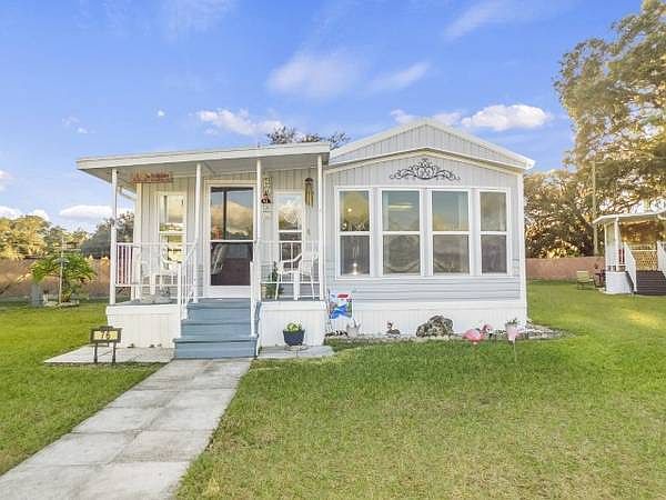 ** Exclusive Listing! Contact listing agent below for ALL showings and offers.** You will easily transition to the carefree Florida lifestyle as the new owner of this picture perfect and charming 1991 Park Model home. Priced to sell at $25,000, this one bed, one bath home will provide an approximate total of 620 square feet of interior living space, including the Florida room addition. It is in excellent condition and will be sold fully furnished, so your transition to the easy life will be complete on moving day! Outside, you can always get your share of fresh air on the covered deck overlooking the back yard. Your new home is located on a large corner border lot with no back neighbor in Landing RV Resort of Zephyrhills, a very well maintained and friendly 55+ adult community in the heart of Central Florida. The lot rent for year round residents is $4488, paid in full annually, or $2244 bi-annually, or $1122 quarterly (Preferred Option), or $374 monthly. The lot rent for seasonal (7/5) residents is $4248 paid annually, due October 31. Lot rent includes water, sewer, trash removal, and use of park amenities. This truly charming home is waiting for you! Call today and let us help you make it yours! This is a park model home on leased land. The land/lot is not included with the sale.