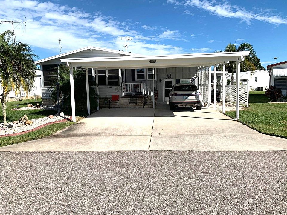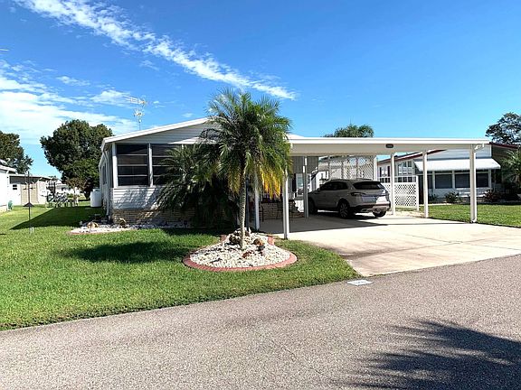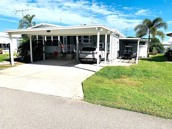 PRICED TO SELL (55+ community) This is an incredible 3 bedroom 3 bath double wide. The main home has 2 bedroom and 2 baths. The attached Florida room is setup as a visitor's quarters with living area, kitchen, full bath including a sauna. The master bedroom is large with a nice accent wall and full bath w/ a step in shower. This home has tons of updates including , new double carport, new kitchen, carpet, new kitchen flooring, updated bathroom, and a newer whole home 22k generator. There is also a side and rear patio with a swing. There is parking space for 4 cars plus a covered golf cart run and a garage / storage. With over 2000 living square feet, you couldn't ask for more.
