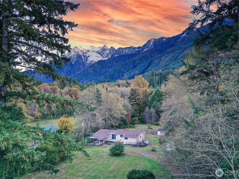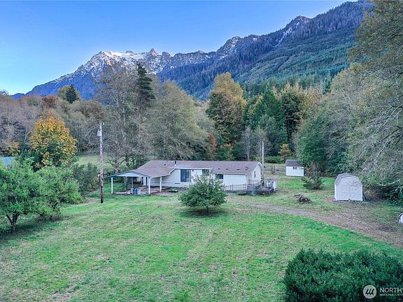 Set on 5 acres with views of Whitehorse Mountain, this property offers both opportunity and value. Existing manufactured home with new roof provides the starting point for buyers ready to take on remodel, replace with a new manufactured home or start your custom build. The true appeal lies in the land and infrastructure: a completely level parcel, framed by evergreens, offering privacy and seclusion with acreage for your hobby farm. Near the Mt. Baker-Snoqualmie National Forest, outdoor enthusiasts will enjoy hiking/fishing. Water quality tests / septic and well inspections are complete and ready for Snohomish County permits. Whether seeking a project, a ready build site, or simply a place to enjoy mountain views, this property delivers.