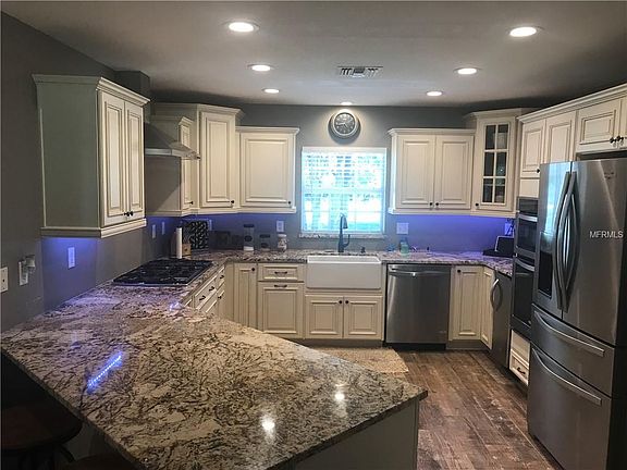 PRICE REDUCTION!!! SELLER MOTIVATED!! Stunning country home in the heart of Zephyrhills on 1.25 acres. This amazing 3 bedroom, 2.5 bathroom boasts brand new tile floors throughout most of the house. Newly renovated kitchen and bathrooms. The kitchen was updated with exquisite granite counter tops, wood cabinets, stainless steel appliances, gas stove, convection oven with microwave, separate ice maker and a tankless water heater. The master bedroom is very spacious with walk in closets and the master bath has dual sinks. Two car garage on the side of the home, a workshop/shed in the rear of the home. Could use for Golf cart storage. New Air Condition Unit in the garage. Conveniently located near restaurants, entertainment and highway access.