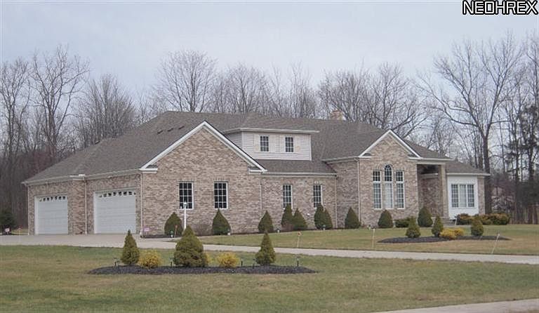 Rare Solon find. Like-new custom-built home with acreage. Home features 1st floor owners suite with full glamour bath, large open great room, separate den/office and convenient floor plan for easy entertaining. Upper level includes 2 oversized bedrooms with full bath. Finished basement with additional half bath awaits your flooring choice. Four-car attached garage offers direct access to basement for complete privacy. An additional Bldg/Barn measuring 54'x30' with electricity is perfect for storage and possible home business needs. Many possiblilites for this unique home. All decor is very neutral. Custom amenities and storage abounds. An additional 3.5 acres adjacent to property is available, also.