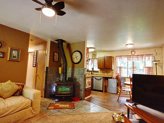 Cozy Home with updated kitchen and newer appliances, indoor laundry, laminate wood floors, wood stove, spacious bedrooms, master bedroom with a view to the park-like backyard. Fully landscaped backyard with private deck off the kitchen. Large Garage and RV parking! Waiting for you...ZERO or Low Down Payment Loan Options may be available. Call for Details!