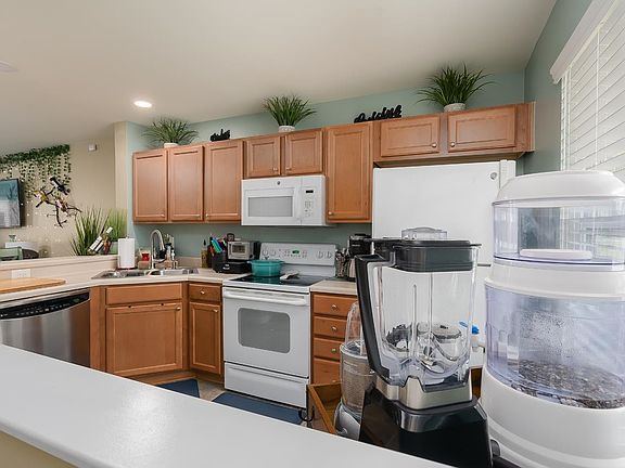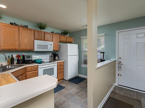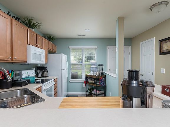 Move-in ready townhome in Bison Court! Open concept, light-filled first floor with spacious living area and dine-in kitchen. Two large bedrooms with spa-like en suite bath on the second floor. Relax on the front porch or back patio. Outdoor storage available. Convenient access to amenities like community pool, restaurants, stores, and more! Welcome home!