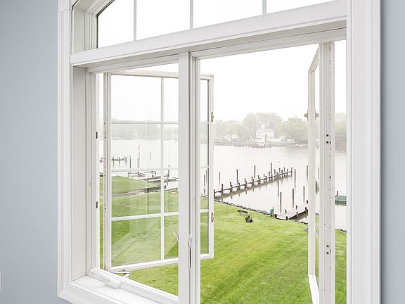 WATERFRONT: Beautiful custom 5 bdrm, 4.5 ba with wrap around covered porch overlooking Seneca Creek. Home offers 2 Master Suites/or family room, prepped for an elevator, gourmet kitchen opens up to dining and living room area, w/brilliant hardwood floors, an additional detached garage/shed, 130ft pier with boat & wave runner lift, only minutes from the bay. Quality home is built to be efficient.