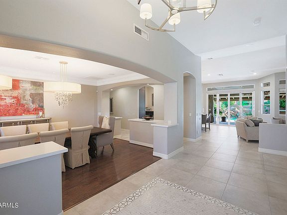 Luxury resort living in exclusive cul-de-sac setting without the HOA Fees! This exceptional home has been professionally transformed inside and out over the past few years. The state-of-the-art Kitchen incorporates high end appliances and a distinctive, over-sized Island with breakfast bar extension. The Sub-zero refrigerator/freezer, Wolf 6-burner gas range, wine fridge, separate ice maker and custom cabinetry make this a gourmet cook's delight. Off the Kitchen is the expansive Dining Room and a huge Laundry with custom cabinetry. The accordion style disappearing wall from the Kitchen to the outdoor Patio introduces the elegant, private rear yard with pool/spa, waterfall/slide, putting green, raised garden beds, gas firepit, outdoor kitchen and landscaped oasis with mature palm trees.