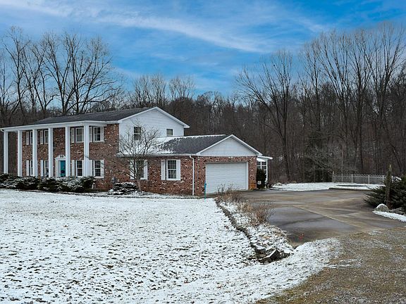 Location is key, and this property strikes the perfect balance between rural serenity and convenient access to the New Albany Business Campus & Intel. This rural property features a spacious 4BR/2BA Colonial home nestled on an expansive 42-acres offering a great balance of lush woods and open lawn space around the home. The main floor of the home offers complete first floor living, including laundry. The upper level has an additional 3 bedrooms and 2nd bathroom. The basement is unfinished with outside access. 2 car attached garage, as well as an additional shop/garage. Moving outdoors, there is a large clearing around the home, offering great locations for a large garden and ample pasture space. A short walk through the woods, and you will encounter the spring fed pond and stream.
