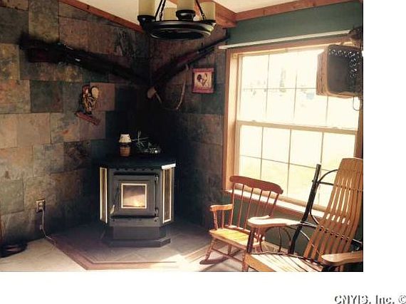 Fabulous, well maintained 3 bed, 2 ba double wide ranch situated on 5+ country acres. Split bedroom/ open floor plan w/ fabulous working kitchen and huge center island, all appliances incld. Kitchen dining w/ efficient pellet stove, flows to formal dining area, open to living room w/ cozy wood burning fireplace. Great screened front porch to relax and entertain. Side deck, 2012 12x20 shed, 1 stall horse barn and small outbuilding. Picture the possibilities of room for a horse, small game farm, hunting; you dream it. Move in ready!