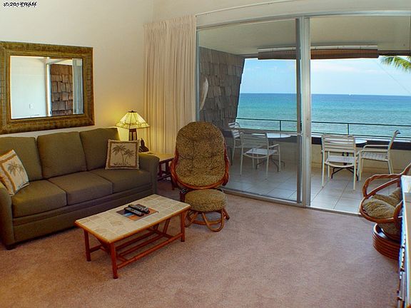 2 bedroom, 2 bath, OceanFront (50 feet). Great sunsets, whale watching, snorkeling, turtles and endless ocean breezes. All Maui has to offer! Full 2nd bedroom and extra large Master Bedroom and 2 baths. Fully furnished unit in great rental program and ready to go. This is a newly decorated, 3rd floor two story unit. One private bed and bath upstairs and private bed and bath downstairs. Fully equipped kitchen. There is a king bed in Master bedroom, twin beds in the 2nd bedroom and queen sofa bed in living room. Brand new 46 inch wall mounted HDTV with an incredible ocean view from living room and comfortable lanai make this unit a joy to be in. Land Tenure: Fee Simple, Agent License #: RS-59508