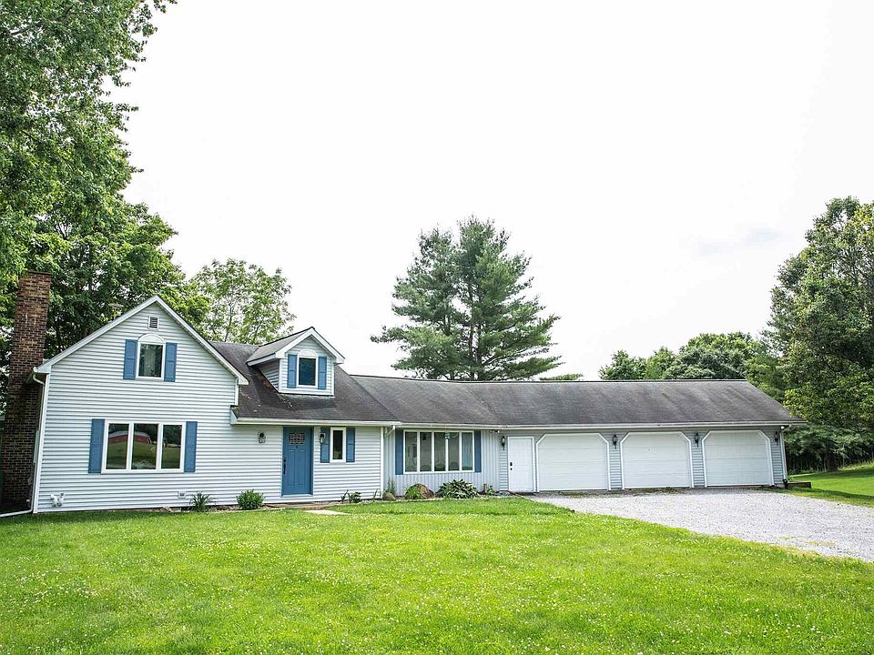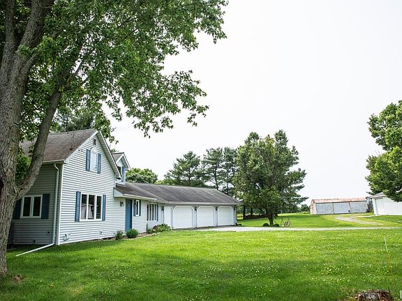 PENDING CONTINGENT - TAKING BACKUP OFFERS. Looking for a home with a little land, wide open country views, and room to store your toys? This great farmhouse has it all! Located on 2.5 beautiful acres, 3 bedroom, 2 full baths, a huge living room with cathedral ceiling & lots of windows, a separate family with wood burning fireplace, lots of built-ins and room for a farmhouse table. The eat-in kitchen has a breakfast bar, lots of cupboard & counter space. Appliances are included in the sale. The master bedroom with large walk-in closet is on the main floor and the sellers have done a nice job updating the master ensuite. The main bath has also been updated. Upstairs you'll find 2 additional bedrooms, one has a cute reading nook area, and a large landing area with hardwood flooring, and newer carpeting in both the bedrooms. The sellers recently had a brand new top-of-the-line Trane heat pump/Central Air & furnace with new ducting put into the home. The home has a large 3 car garage with a 'man cave', also offers a 32X64 steel pole building as well as a 36X24 quonset building (the seller currently rents storage space in both buildings to generate some income). There's even the perfect spot for a large garden. The sellers often see deer and other wildlife on their property. The sellers were going to put a new steel roof on the home but since they are moving, in addition to pricing the home accordingly, the sellers are now offering $5,000 back to the buyer towards the roof on the house (the roof has not leaked but is getting up there in age).