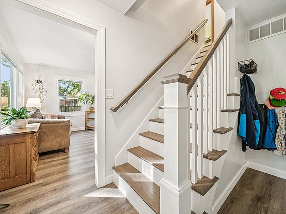 Spectacular Remodeled Home on Half an Acre! Welcome to this beautifully updated home on a spacious half-acre lot with plenty of room to add your dream shop. You will enjoy relaxing on the large front porch and watch the kids as they play on the new driveway. Inside, the charm begins with a stunning leaded oval glass entry door that opens into a welcoming foyer and an elegant open rail stairway with new hardwood treads. The bright and airy living room is filled with natural light from a large picture window and additional windows overlooking the side and backyard. Fresh white trim and durable luxury vinyl plank floors give the space a modern touch. The completely remodeled kitchen is a chef’s delight, featuring abundant soft-close cabinets, Quartz countertops, a composite sink with a backyard view, stainless steel LG appliances (including a gas range), a pantry, and an adjoining breakfast nook with a new Pella patio door. For gatherings, the formal dining room offers the perfect spot with double windows and stylish LVP flooring. Upstairs, you’ll find 4 spacious bedrooms, including a gorgeous primary suite with wood floors, ceiling fan, lighted closet, and an updated private bath upgraded vanity and a tile shower. Three additional spacious bedrooms also feature hardwood floors and large windows. The hall bath offers a tub with a tile shower, tile floor, and generous vanity space. Extra storage is easy with a large walk-in hall closet complete with a window. The finished basement includes a cozy family room featuring a stone-faced wood-burning fireplace including stone columns, a stone mantel, gas starter plus track lighting. There is a large storage area that could be easily finished for future expansion, plus there is a large laundry and mechanical area. The garage is fully drywalled and painted with a door to the backyard and new overhead door. Step outside to enjoy the huge new patio, shaded backyard with mature trees, storage buildings, and even a chicken coup!. The updates include a new septic system this past spring, windows, roof in 2019, HVAC in 2017, paint and trim and concrete. City of Wichita water is available for hookup! Don’t miss this one-of-a-kind property—call today to schedule your private showing before it’s gone!