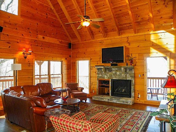 Lovely 3 Bedroom/ 3.5 Bath Log Style cabin conveniently located to The Great Smoky Mountains and surrounding areas. Enjoy access to town on the back roads and avoid the traffic! Spacious, open layout on the main level greets you as you enter offering lots of glass to let you soak in that Smoky Mountain Sunshine. A finished basement is equipped with a Rec room, Wet Bar and Bedroom. The cabin is fully equipped & furnished and has wrap- around Decks and a Hot tub. Currently on a rental program this home also has the potential to make a great permanent residence.