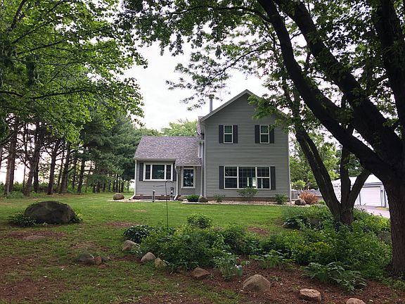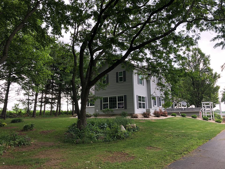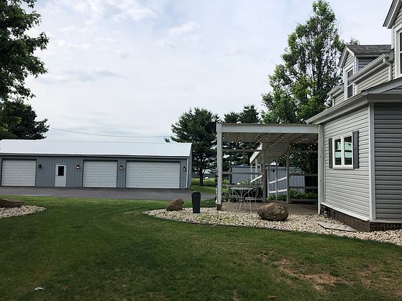 Completely remodeled farmhouse sitting on 5 acres in the Winnebago School District. Main floor gutted to studs and remodeled in 2016 plus front room and upstairs bedroom addition added. Modern country farmhouse kitchen has stainless GE appliances, including gas cooktop, double oven, apron sink, and additional vegetable sink in island. Counters are Cambria Quartz. Tile backsplash with under-cabinet lighting. Ceramic tile throughout main floor area. Kitchen is completely open into dinning room and front living room. Large bay windows with beautiful sunset views in the evening. Living room has wood burning fireplace with stunning white mantel and tile surround. Master bedroom on main level with tiled standing shower and open shelving. Acacia wood flooring. Sliding glass door exit with small porch overlooking back yard. Upstairs has 3 bedrooms, 2 hall closets, and one bathroom with a double vanity and completely tiled tub/shower combo. New hardwood floor in upstairs bedrooms. 3 large egress windows added to basement in 2017 and one side of basement finished in early 2018, which currently serves as a family room or could be used as the 5th bedroom. Has home office and large walkin closet in it. The unfinished side of basement houses the laundry, utilities, including water softener, and a small kitchen that was used as a canning kitchen. There is a basement exit. Extensive waterproofing and tiling was completed to the house in 2017 to prevent any basement leaking and full easy maintenance-free rock landscaping with beautiful stone firepit added in 2018. Blacktop drive was added. Outdoor wood boiler (would need to be reattached to furnace) generator, large outbuilding for shop/garage. Two other outbuildings that were used for horses along with horse watering already set up in front of back pasture. Property has raised bed gardens, raspberry bushes, rhubarb, grapevines that make excellent wine and jelly, as well as a crab apple tree! This is a perfect country property located just 20 min to shopping on highway 173, shopping on East State St, or Main St in Rockton. 30 minutes to Freeport and a short 5-7 minutes to Winnebago Schools!
