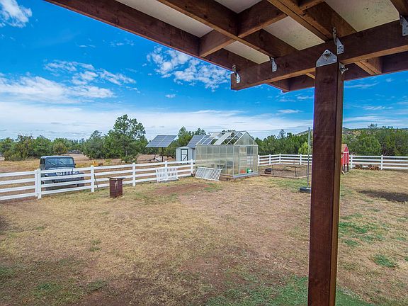 Special Find in Northern AZ. Large Home on 18 acres, 1920 SF Garage for all those toys, Shared Well with agreement in place....all off-grid with maintained roads. Immaculately maintained 4 bedroom home plus an office room, two living areas, laminate floors in the heavy foot-traffic areas, separate laundry room, and super clean throughout. Two covered porches and fenced back-yard. Furnishings and appliances are included making your move-in easy! Off-grid with a Shared well (shared well agreement in place and quality is bi-annually monitored, 20.5 gpm). Solar is 2400 watt, 48 volt, 4000 watt inverter, Wind Generator 900 watts, 48 volt. 24 newer batteries. Back-up generator is 12 KW. Room for several vehicles, workshop space, and storage in garage nearly as large as the home! 1920 sf with a concrete floor and drive-through garage doors More details you should know: property includes a 3000 gallon water tank filled by the well, ceiling fans throughout the home and two evaporative coolers keep the home cooler in the warmer days of summer. A wood-burning fireplace and wood burning stove keep the furnace use at a minimum in the winter. Quartz Counter tops. Separate laundry room has a pet-door to the gated carport which can serve as an impromptu secured pet run. The back-yard is fenced and the views are tremendous. Land is level and dirt is great for gardening....large garden and greenhouse are located in the fenced backyard. We love the office space located off the master bedroom that provides the solitude needed to do business. Home has recently been painted and laminate flooring installed. Two propane tanks on site, one 500 gallon and one 250 gallon. Over 18 acres and all useable property. Close to State Trust Land (see map in photos) Located in Sierra Verde Ranches with an annual fee of $61 to maintain the roads to the property plus maintain a community well if you ever find a need for it. Massey Ferguson tractor will remain on the property. Anvil Rock road itself is maintained by Yavapai County. This is a wonderful property and a must see if you are looking for an accessible, rural property in Northern Arizona. Directions: From I-40, follow Anvil Rock Road (exit 109) south 16 miles to Ponderosa Springs Trail and turn left. First left at Antelope Trail, follow this to the property.