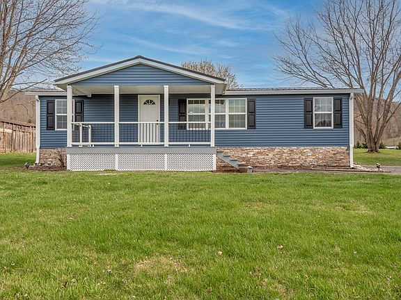 This newly updated and incredible home has so much to offer, sitting on 1.2 acres, this property includes three bedrooms, two full bathrooms, new vinyl flooring, new tile walk-in showers, stainless steel appliances, and so much more! When you arrive at the property, you will notice the breathtaking 360 degree views of the mountains as you approach the home. The outside of the home has been completely updated, including new vinyl siding with OSB boards and a vapor barrier underneath, a new metal roof, new gutters, new railings on the front porch, and real stone placed over the permanent foundation on the front and side of the home. The front porch is covered and has the most amazing view with a feel of serenity, making it the perfect place to sit and drink coffee in the mornings. Once inside, you are welcomed with a large living area that has an open-concept layout to the kitchen and plenty of natural light coming through the new double-pane windows. To the left of the living area,