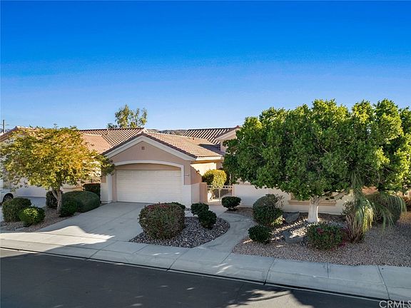 This unique Morocco model with a detached casita is nestled in the middle of the 55+ gated Sun City Palm Desert Community. The grounds and landscaping are as beautifully maintained as this single level 3 bedroom/3 bathroom home. Walking through the front door, you're immediately met with an open and bright floor plan. High ceilings with brand new fans, an abundance of windows with plantation shutters, freshly painted throughout, new plush carpeting, and a built-in entertainment center. Tile floors, plenty of counter and cabinet space, new baseboards, as well as a chef island in the expansive kitchen. Washer and dryer tucked in own laundry area with direct 2.5 car garage access and brand new water heater. Master bedroom with en-suite, dual sinks, walk-in shower and oversized closet. Guest bedroom situated down the hall with sliding closet doors and full guest bathroom nearby. PLUS, a private detached casita with new laminate floors, bathroom en-suite and kitchenette area. Spectacular amenities such as: Mountain, Sunset and Lake View Clubhouses with 2 fitness & wellness centers with an indoor walking track, 5 outdoor pools/spas, billiard room and dance studio, a library, fenced in dog parks, private RV lot, and on-site cafes and restaurants. Throughout the community runs two 18-hole golf courses accompanied by 25 lakes and waterfalls. Whether you are driving, biking, or walking, this community absolutely encompasses a feeling of tranquility and "living the dream"!