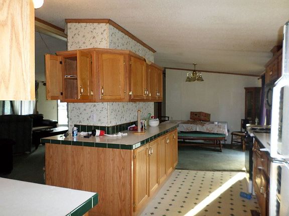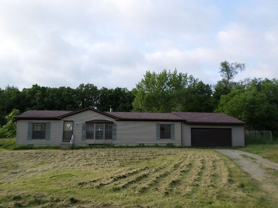 Nice opportunity to be in the country! This ranch style manufactured home has a nice floor plan, 2 car garage, large deck and a 1 acre lot. Large living room with stone fireplace, big kitchen with tons of cabinet space, dining area off of the kitchen, laundry room, 3 bedrooms and 2 full baths. Master suite with private full bath that has garden tub and separate shower plus a walk in closet. Needs your personal touch, a few cosmetic updates will go a long way here.