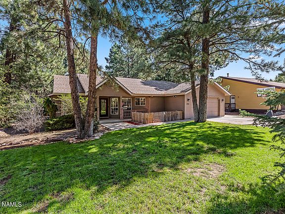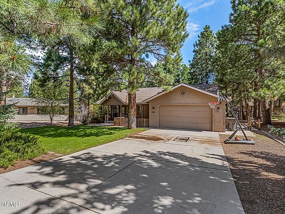 Step into this well maintained single level Elk Run home nestled in the highly desired mature Ponderosa Pines with mountain views. With a fantastic split floor plan this home boasts 3 bedrooms plus an office/potential bedroom! Enjoy the newer GE Stainless Steel appliances in the upgraded kitchen and cool down with central air conditioning. The expansive back deck that nestles a Flagstone patio, allows for relaxing in the sun and stargazing at night with Flagstaff's famous dark skies! The larger .31 acre lot also has a great Flagstone side yard! Most of the furniture in this home can be sold with the house, ask your agent for the list of items for sale.