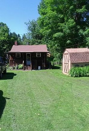A great place to retreat to! Spacious, open, rustic floor plan. Main floor bedroom w/loft above. Enclosed porch facing river. Living room, Dining room combo w/Propane Fireplace. Kitchen w/Breakfast bar. Shed and Garage for plenty of storage. Garage is 26x20 with electricity, woodburning fireplace, refrigerator and stove, great for entertaining. New roof on house 2013, kitchen cabinets 2006. A great place to relax and unwind!