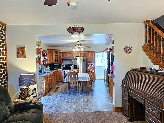 This beautifully renovated 4-bedroom, 2-bath Cape Cod is a true gem! Updated in 2020 and featuring a new Elgin septic system installed in 2021, it combines modern amenities with the charm of nature on 1.53 acres. Enjoy serene views, abundant wildlife, and your own creek, all while having a detached shed for extra storage. The main level is designed for convenience, featuring 2 bedrooms, a full bath, and a front room with French doors perfect for dining or an office. The spacious kitchen, with room for a table, opens to the cozy living room and leads to a large mud/laundry room with deck access—ideal for entertaining or enjoying the outdoors. Upstairs, you'll find 2 more generously sized bedrooms, another full bath, and plenty of storage options in the two over sized knee walls. The unfinished basement offers additional storage and a full water treatment system, plus it walks out level to the backyard for easy access. This home is perfect for those seeking a peaceful retreat while still being close to modern comforts. Don’t miss out on this incredible opportunity!